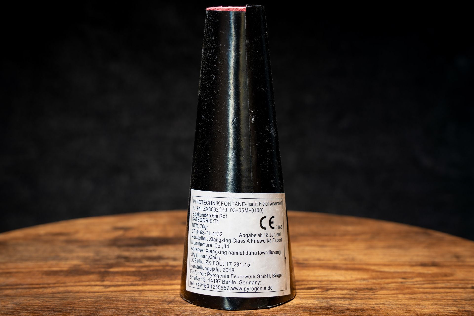 Flammenflocken-Fontäne in grün, bereits mit elektrischem Zünder versehen.