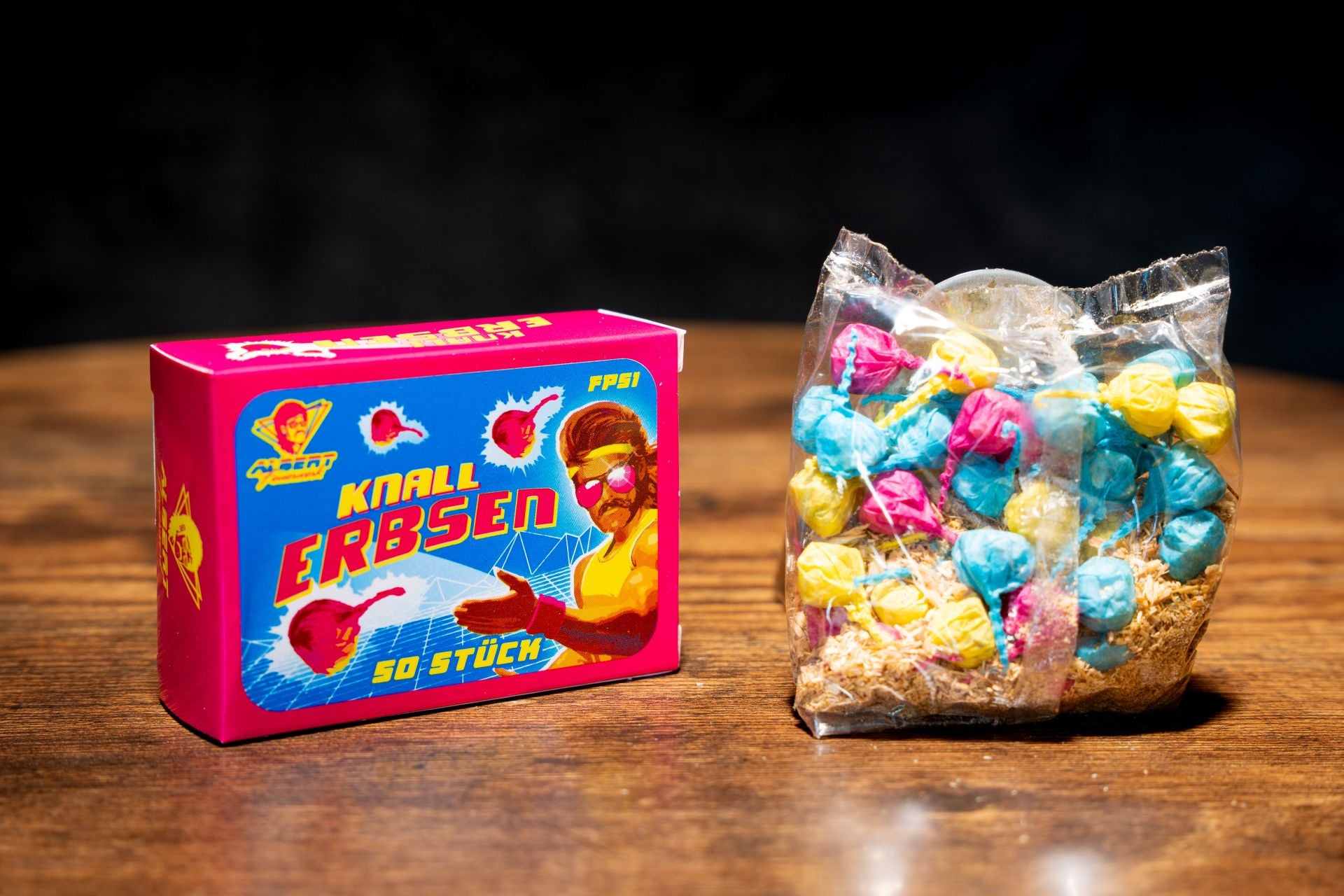 50 klassische Knallerbsen pro Schachtel.