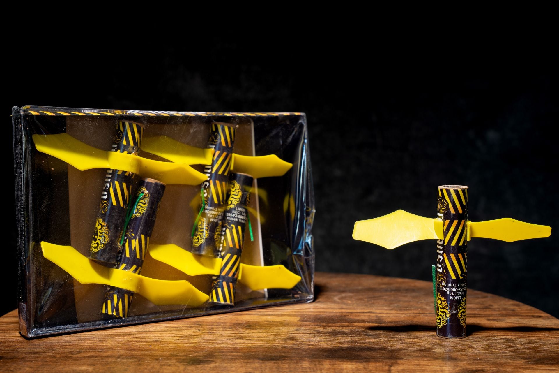 Fliegender / pulsierender Farbeffekt mit Brokatkrone (2 Stück), Fliegender / pulsierender Farbeffekt mit knackenden Sternen (2 Stück)