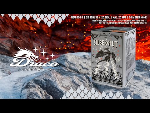 Tieftonsilberpfeifaufstieg zu Silbercrackerbukets mit Rotblinkern & Finalsalve aus Titansaluts.