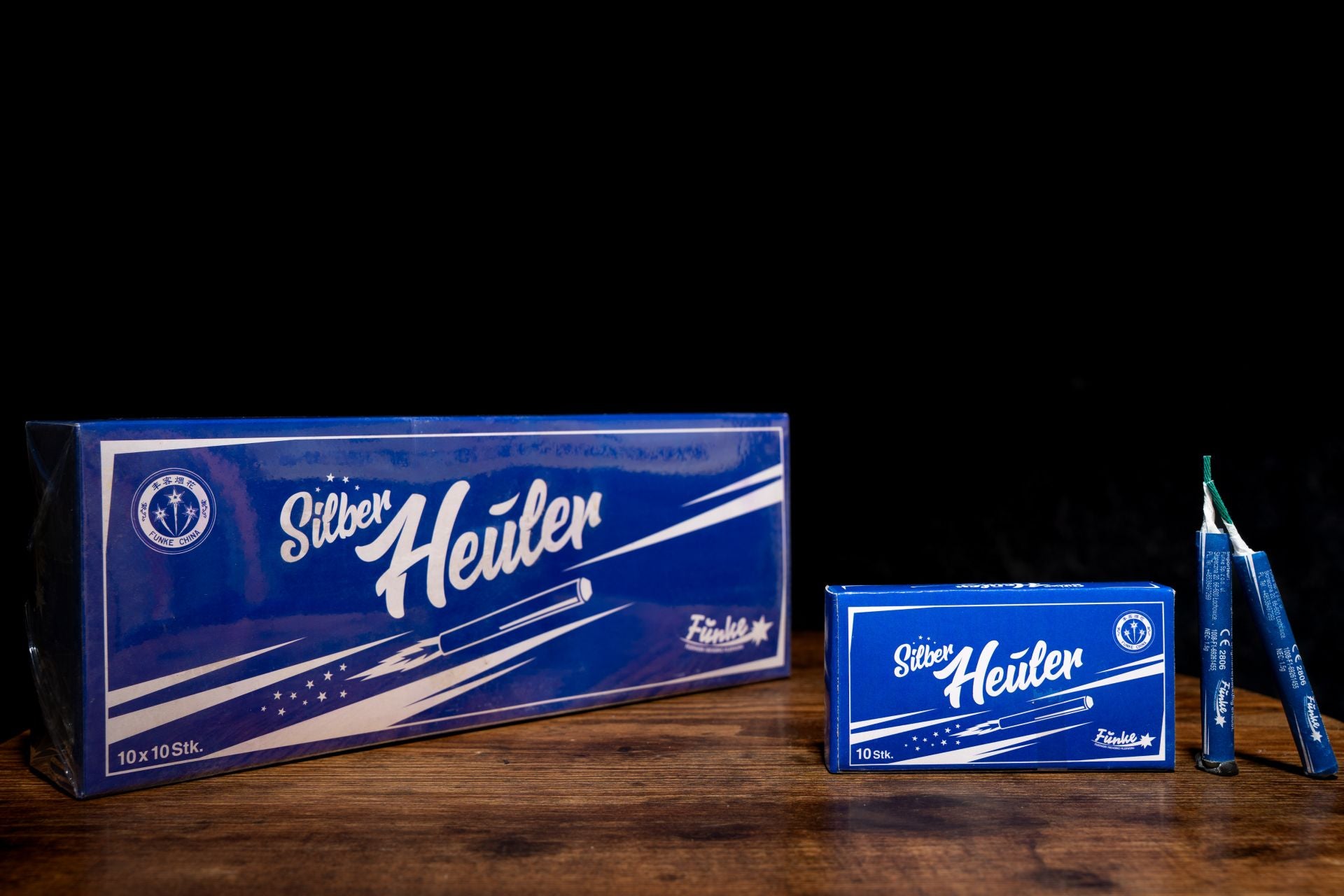 Pfeif-Fontäne mit Silberfunken "Silber-Heuler", ca. 3 Sekunden Brenndauer, 1,5g NEC, 10 Stück pro Packung, Kategroie F1